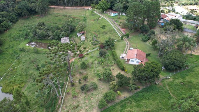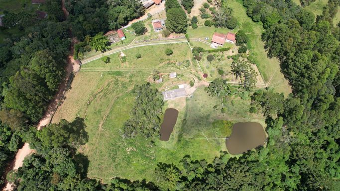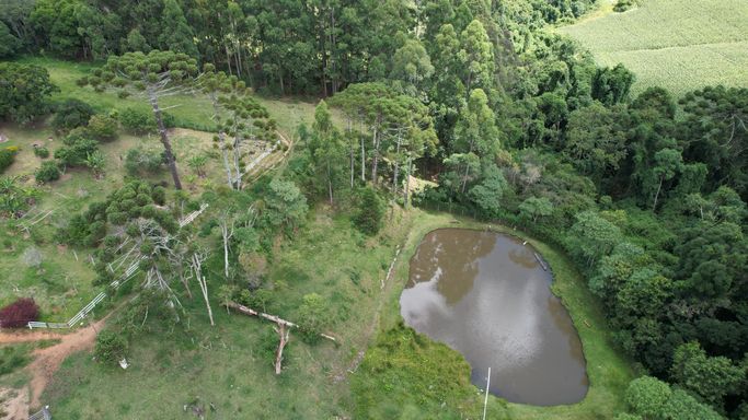 A propriedade é rica em água, com riacho e lagos, proporcionando abundância hídrica e um cenário natural muito bonito.